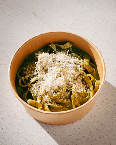 Pesto de basilic et huacatay, parmesan.